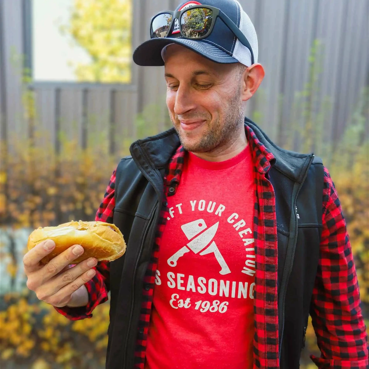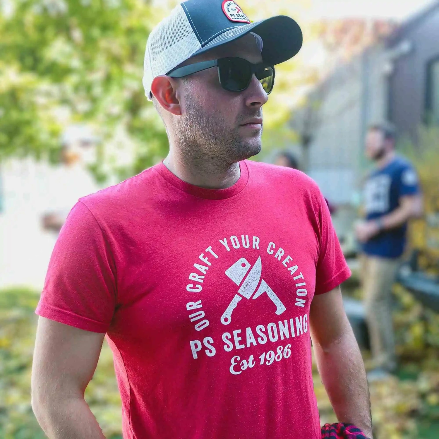 Whether you’re twisting links or manning the grill, you’ll rep your favorite seasoning company in style and comfort with our signature tee.