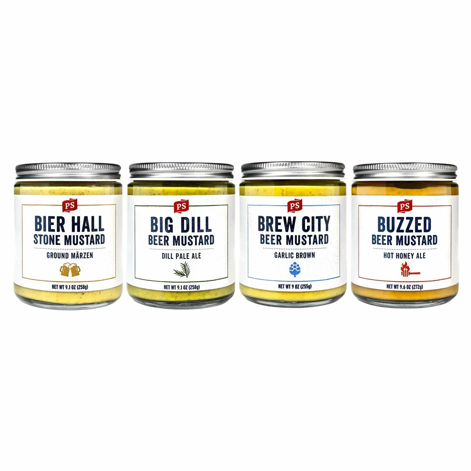 Prost! Raise your glass to our mustard flight. Featuring all four of our beer-infused mustards, you’ll get to sample each flavor (and save a little too).