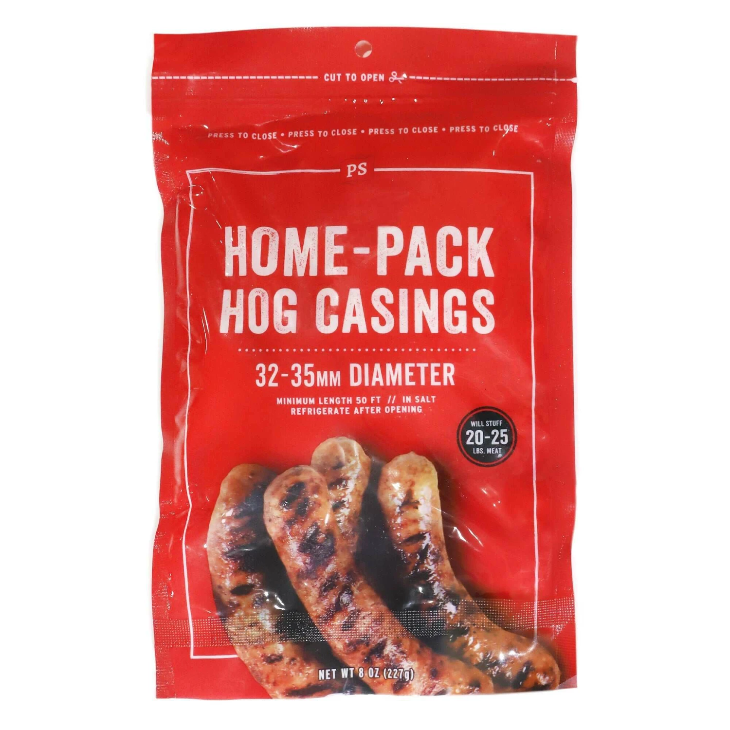 Natural hog casings are perfect for making brats, kielbasa, polish, rope sausage, and more. Each sausage casing package contains at least 50 ft of salted natural hog casing that will stuff 20-25 lbs.