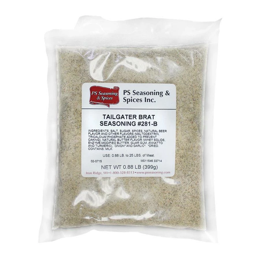 Our Tailgater Bratwurst Seasoning is the perfect spice blend for making the best bratwursts. Our special blend of onion, spices, and natural flavors creates an unbeatable flavor for pork or beef. Make great-tasting brats for your next tailgate or picnic!