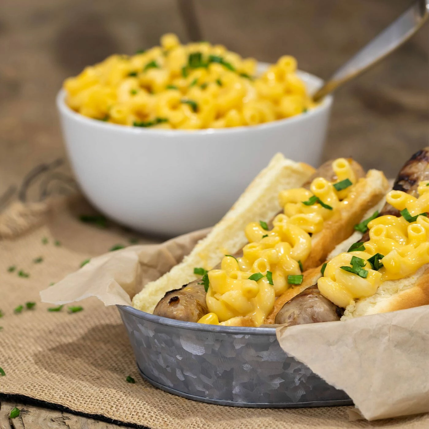 No. 353 Mac & Cheese Brat Seasoning is the perfect way to elevate your grilling experience. Infused with real pasta, creamy cheddar and rich butter flavors, this seasoning adds delicious comfort-food notes to brats. No pre-boiling required and optional additions of bacon or Hi-Temp Cheddar Cheese add an indulgent twist.Â