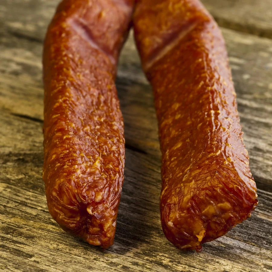 Our Grandpa’s Landjaeger Seasoning is a simple blend of spices. Landjaeger is traditionally a semi-dried sausage. It’s loosely stuffed, flattened and smoked.