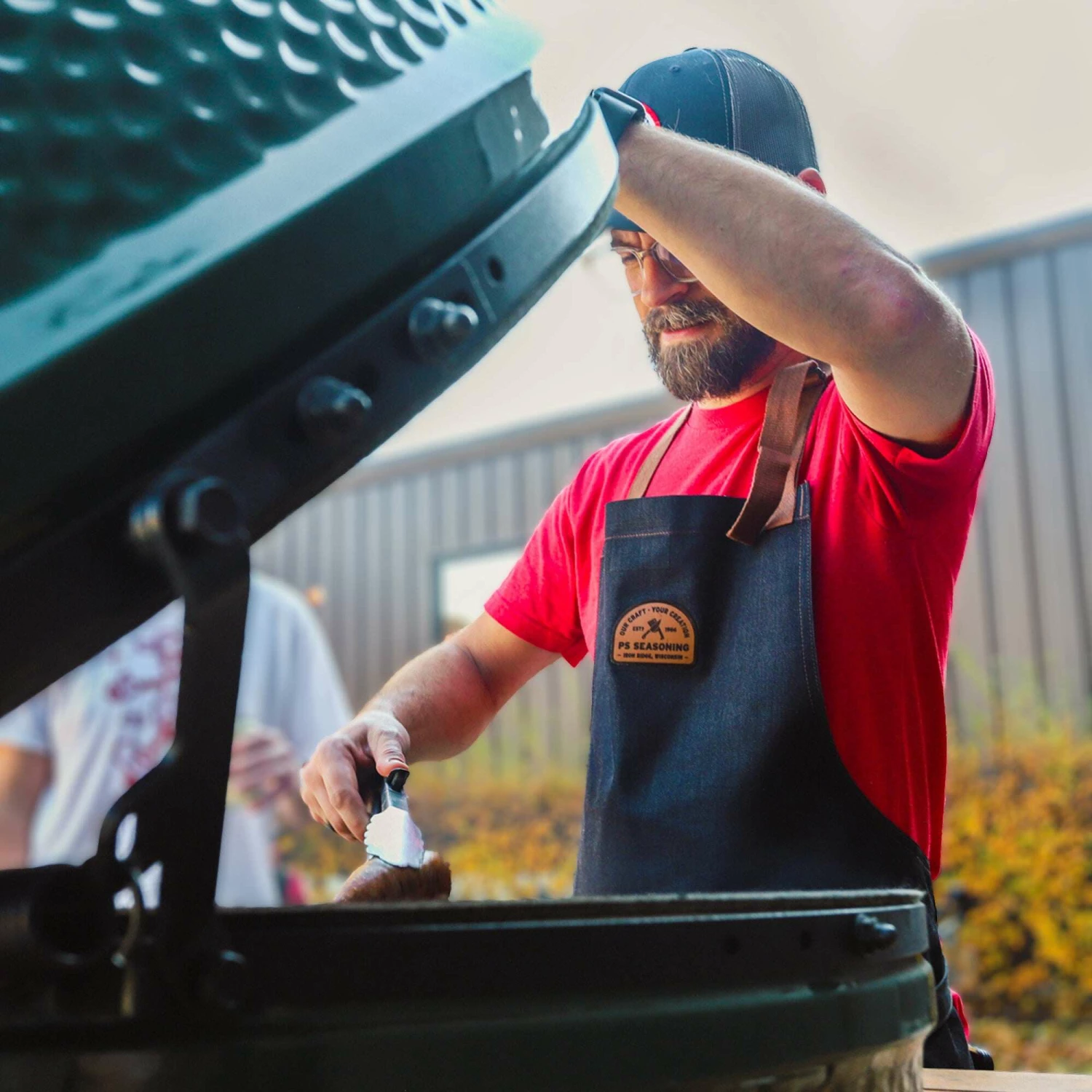 Protect your clothing and look friggin’ awesome doing it with this PS patch apron. Perfect for grilling, baking or sausage making, this lightweight charcoal denim apron features two pockets and a leather-style logo patch.